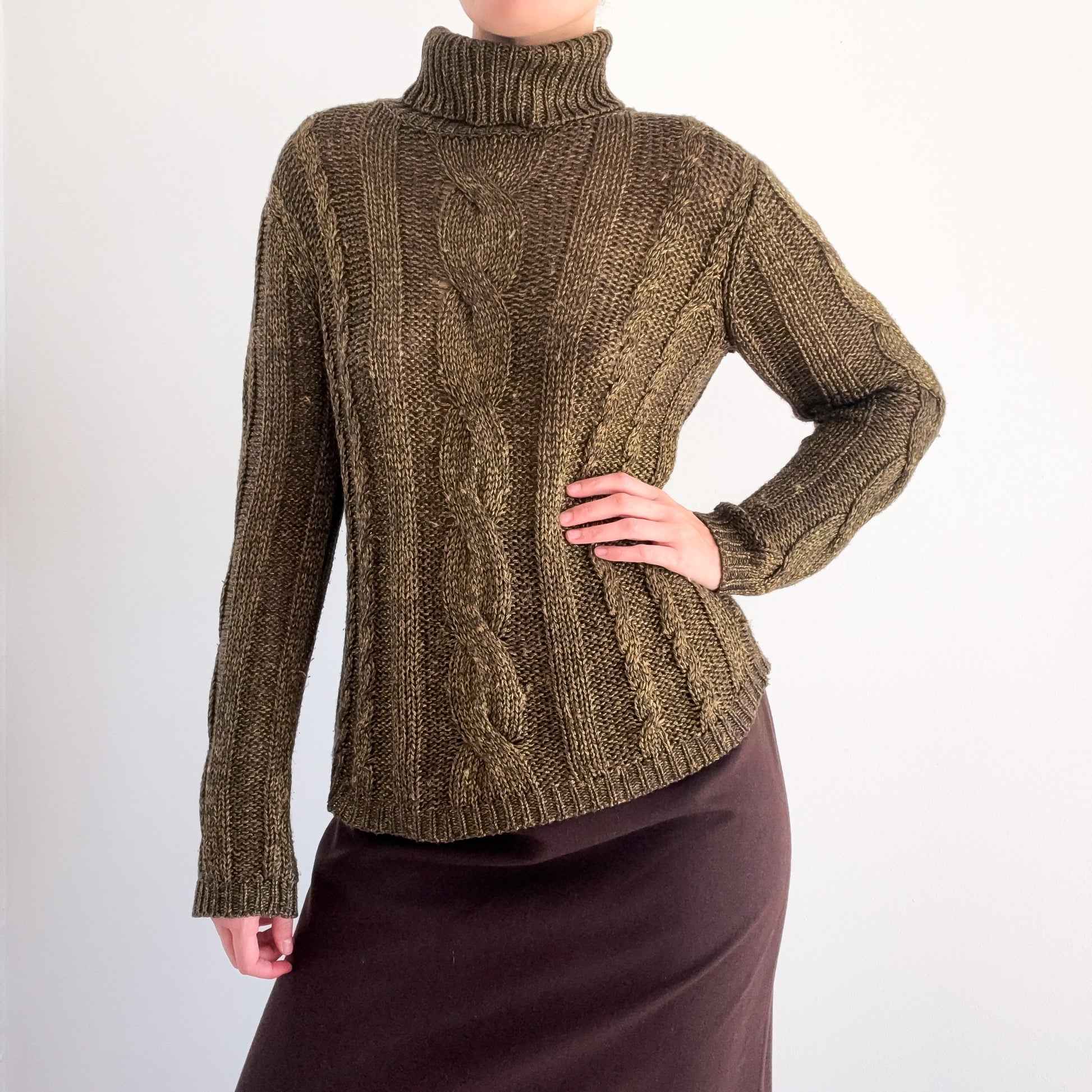 Y2K Olive & Gold Metallic Knit Sweater / SZ M