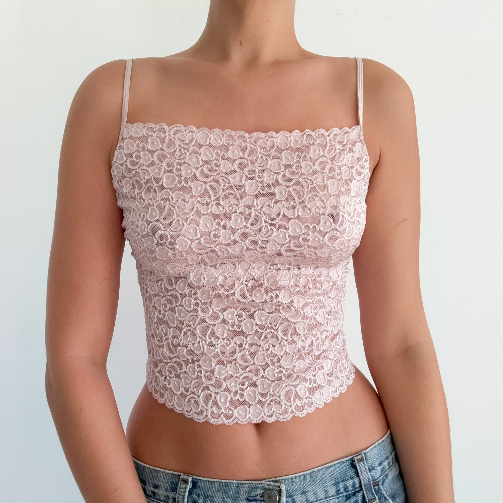 Y2K Pale Pink Lace Cropped Tank / SZ S