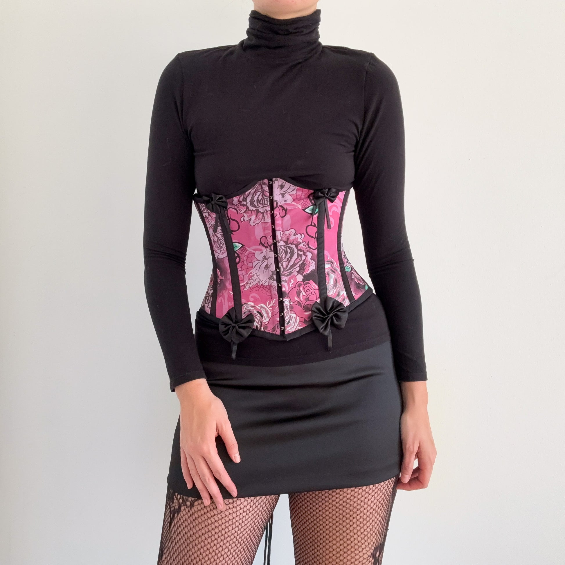 Y2K Pink Printed Bow Underbust Corset / SZ M