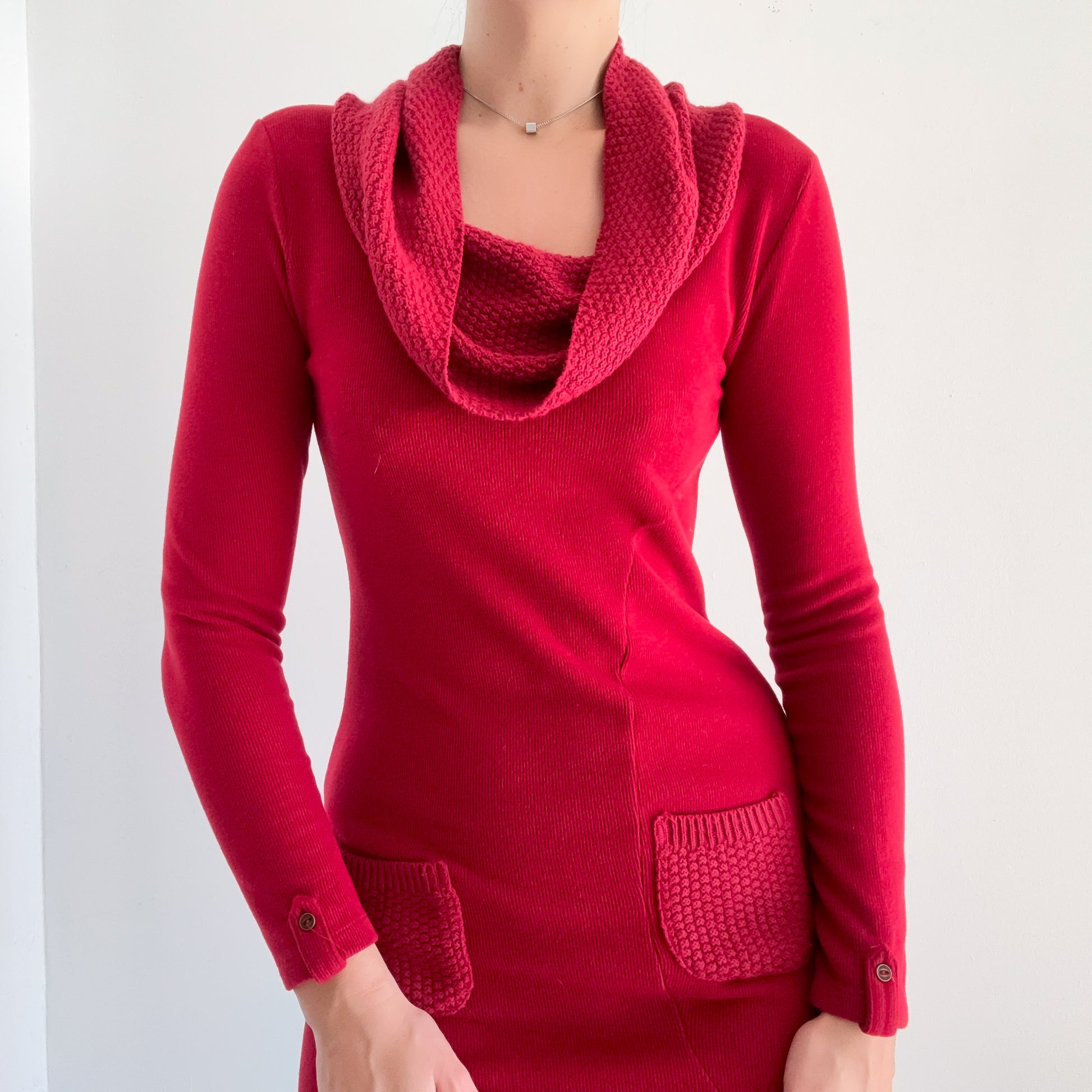 Y2K Red Cowl Neck Pocket Sweater Dress / SZ M