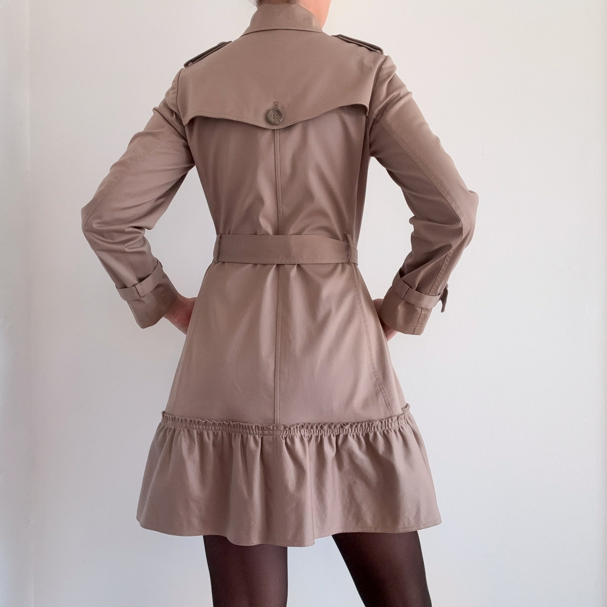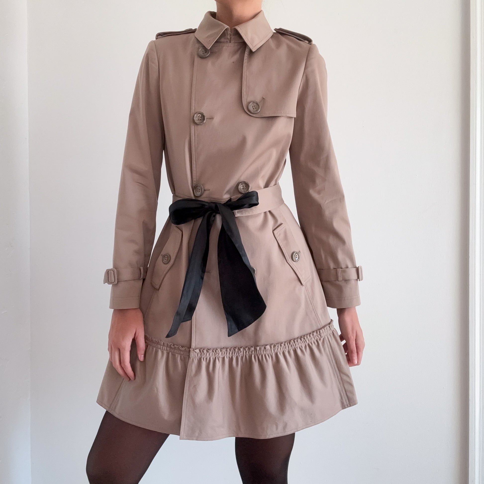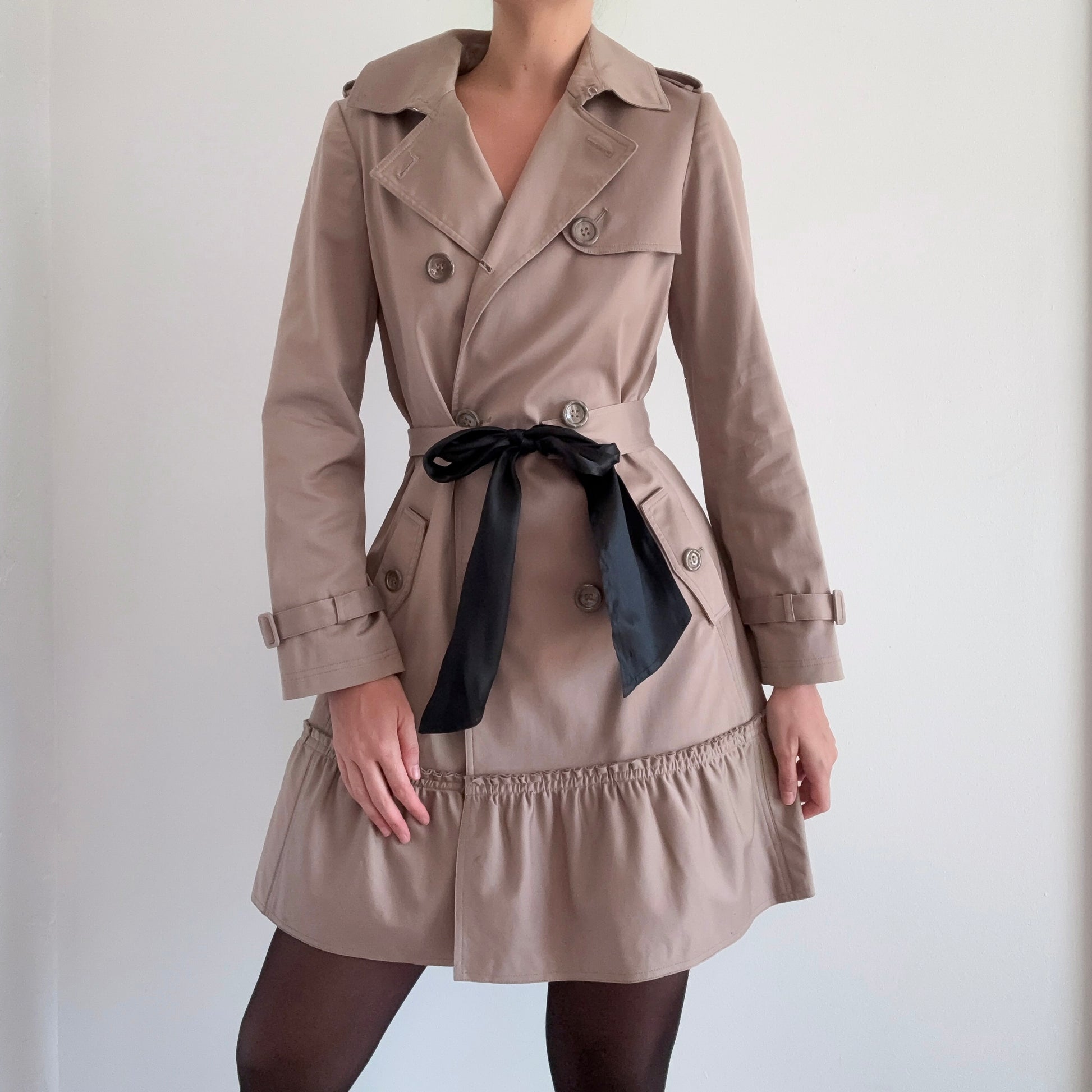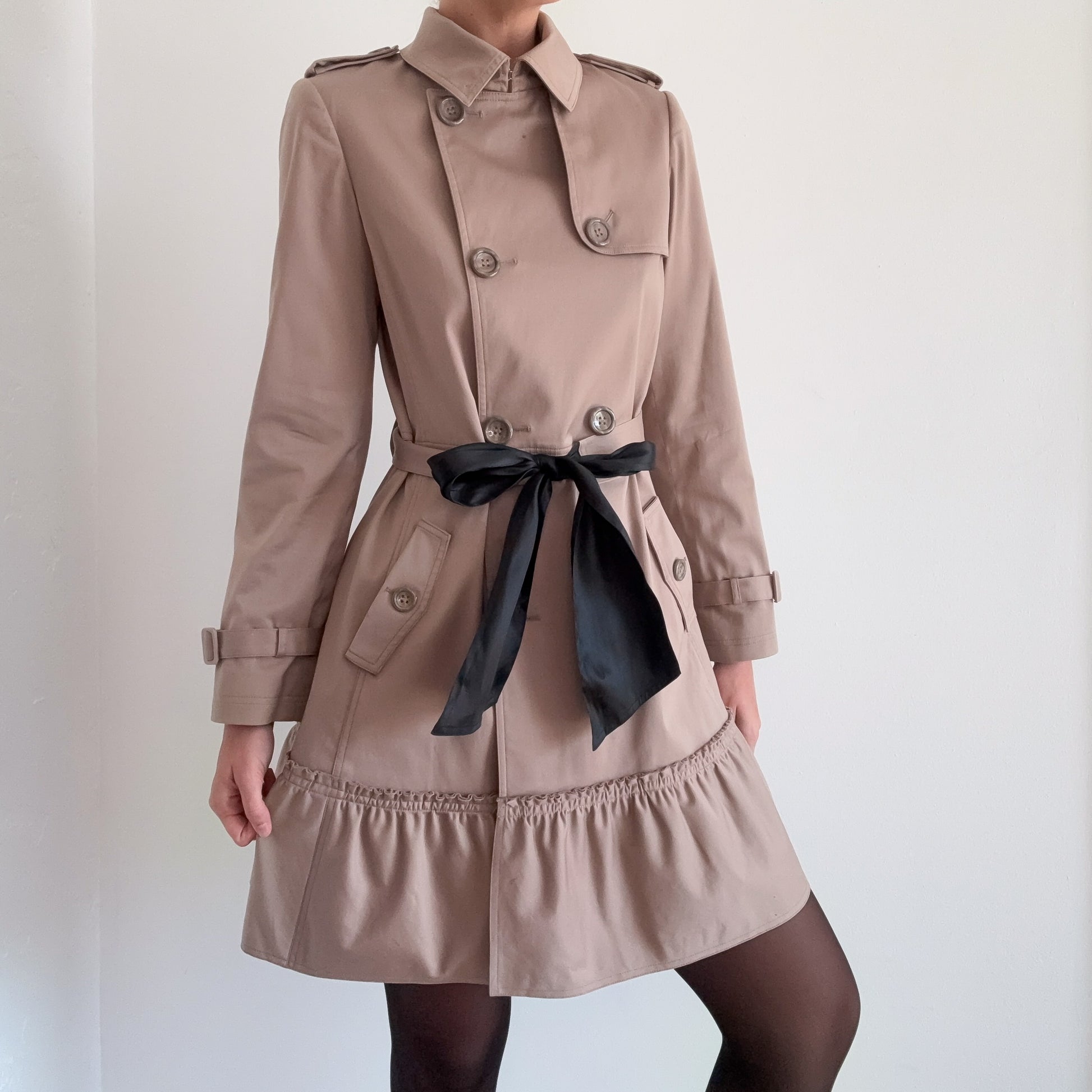 Y2K Taupe Ruffle Tie Trench Coat / SZ 4