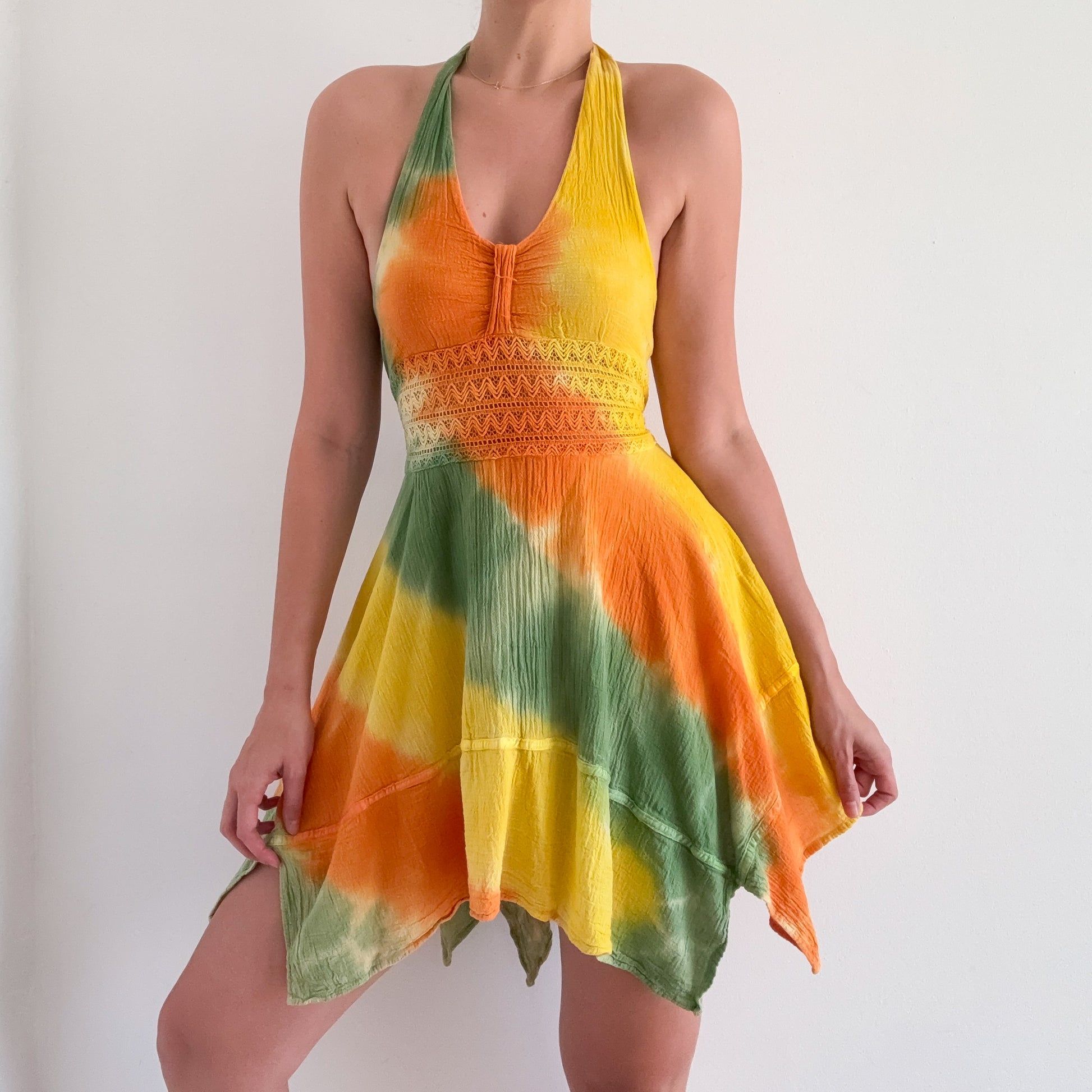 Y2K Yellow Orange Green Cotton Sundress / SZ XS-M